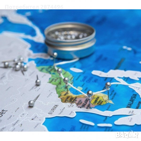 Карта, която се променя след всяко пътешествие до непознато място: Изтрий (с гумичка или монета) слоя със скреч покритие от посетените места, за да разкриеш цветовете ѝ отдолу.