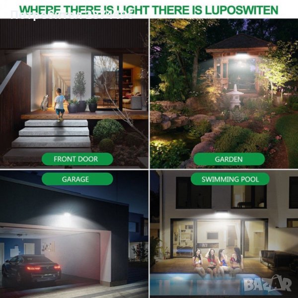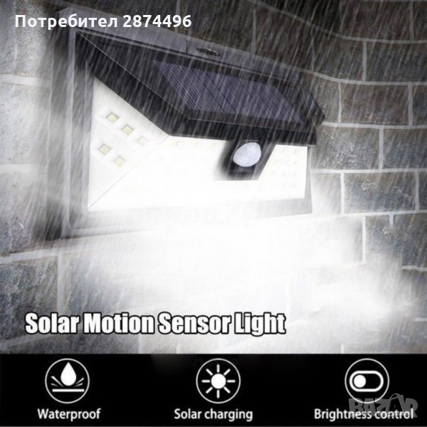 Сензорна лампа с устойчив на атмосферни влияния корпус, индукционен датчик за откриване на движение и соларен панел. Външното осветление не се нуждае окабеляване или захранване от централна мрежата. С наличието на вградената акумулаторна батерия, соларния панел преобразува до 17% от слънчевата енергия в електрическа. LED лампа се нуждае единствено от слънчево греене и благоприятно време.