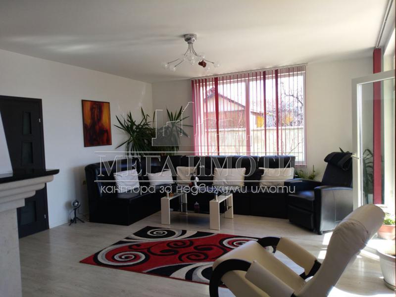 'Мега Имоти' предлага новопостроена /2010г/къща в района на кв.'Дружба'. Разпределение: първи етаж-голяма дневна с камина-трапезария и кухня-обединени в едно общо пространство, кабинет, баня -самостоятелно WС и мокро помещение-обединени в едно, широк коридор, голям гараж 90кв.м. с две парко места, котелно помещение; втори етаж: ЧЕТИРИ спални всяка с излаз на тераса и голяма тераса над гаража с излаз от широк коридор, баня -самостоятелно WС и мокро помещение-обединени в едно и кът за отдих с прекрасна гледка към 'Карандила' обособен предстълбищното пространство. Имота се предлага обзаведен. Двора е 1 дка ограден с масивна ограда, разполага и с кладенец. Отопление котел на пелети. Изложението на стаите:изток/юг/запад. Реф.номер 10201