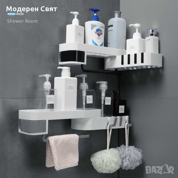 Органайзер за баня, който ще ви спести място и ще организира идеално козметични аксесоари, козметика за баня, четки за зъби и др. Той се монтира на стената, със самозалепващи лепенки, като може да го сложите изцяло хоризонтално или на ъгъл. Практичният му дизайн е чудесно решение за всяка баня.