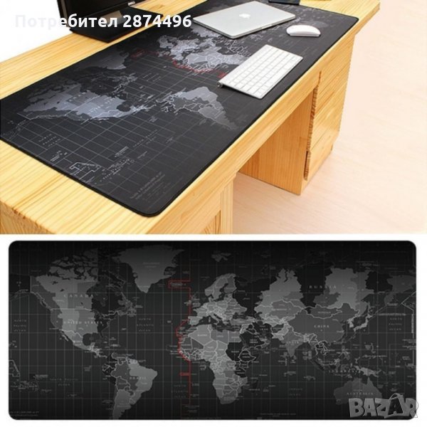 Голяма подложка за бюро – Карта на света е специално предложение за почитателите на красивите, уникалните и практичните аксесоари. Моделът представлява голяма подложка, която може да се постави на работното бюро. Върху нея се слагат клавиатурата и мишката, така че да не се ограничавате в пространството за движение. Бъдете свободни да развихрите фантазиите си и да изразите по най-добрия начин своите виждания. Подложката е с изключително стилна и интересна визия – карта на света в черно и сиво. Излъчва лукс и качество с всеки свой детайл.