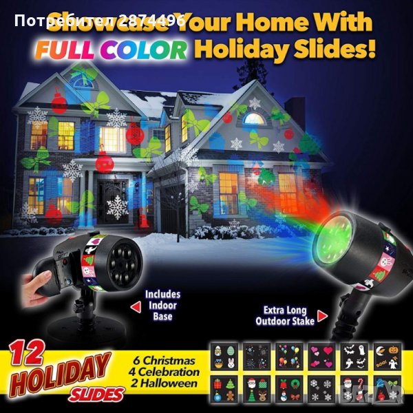 Прожекторът излъчва светлините на разстояние до 300 кв.м, което означава, че дори и да го поставите в ъгъла на двора или градината, той ще разпръсква фигурките навсякъде. Поставете го в дома или в двора си и се наслаждавайте на тези красиви цветни фигурки.