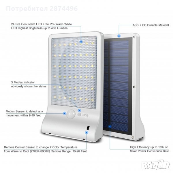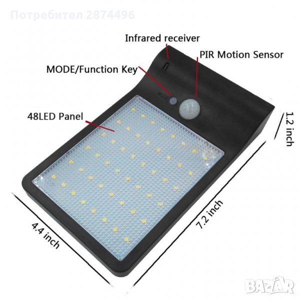 Ще имате отлична видимост благодарение на функциите си и 48 LED диода. Сензорът за движение предлага удобство, ще пестите от заряда на соларната акумулаторна батерия, да се включва, когато има нужда.