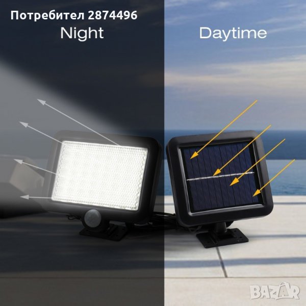 Градинска LED лампа с качествен ABS пластмасов корпус- издръжлив на атмосферни условия, вградена акумулаторна батерия 1200mAh, PIR сензор за движение и соларен панел. Възможността за 120° сензор с широкоъгълен светлинен лъч до 3 метра, лампа е подходяща и приложима в градини, дворни пространства, веранди, гаражи, тераси и др.