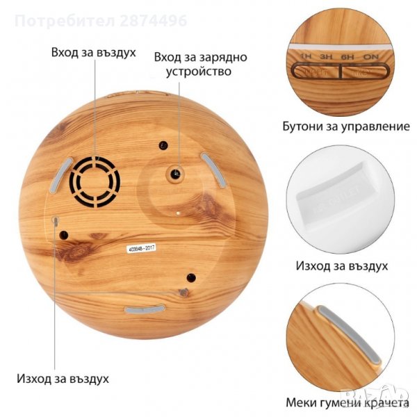 Арома дифузер с етерични масла за домашна ароматерапия е иновативен продукт, който разпръсква вода и етерични масла в дома ви. Добавете в резервоара вода и няколко капки от любимите ви етерични масла.