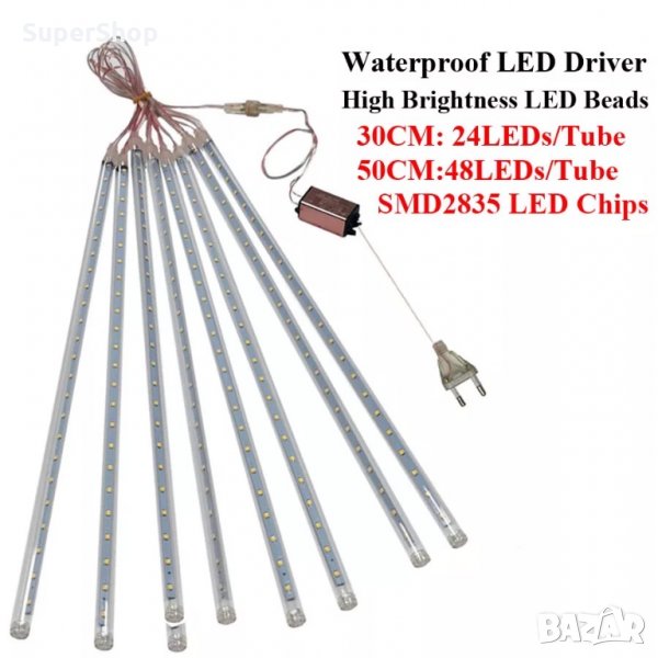 Светеща LED украса с ефект на падащ сняг и възможност за удължаване до 4 броя от същия вид. Подходяща за вътрешна и външна украса (степен на защита IP44). Продуктът е изработен с високо качество, като ефектните светлини се получават от светодиоди, което гарантира дългия му живот. Ако е необходима по-голяма дължина е необходимо да се подмени захранващия модул 5V DC с такъв отговарящ на използваната дължина.