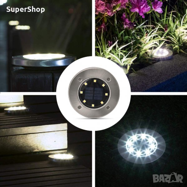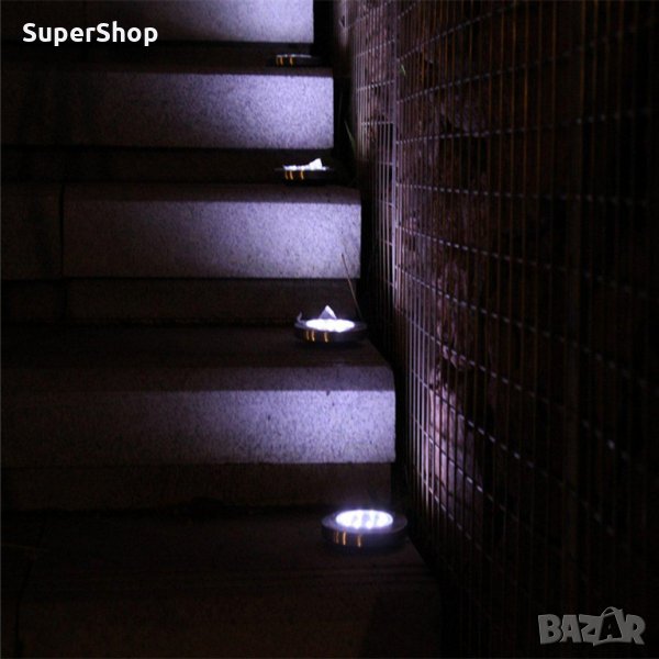 Комплект 4бр LED соларни лампи Disk Lights лампа за градина прожектор украса