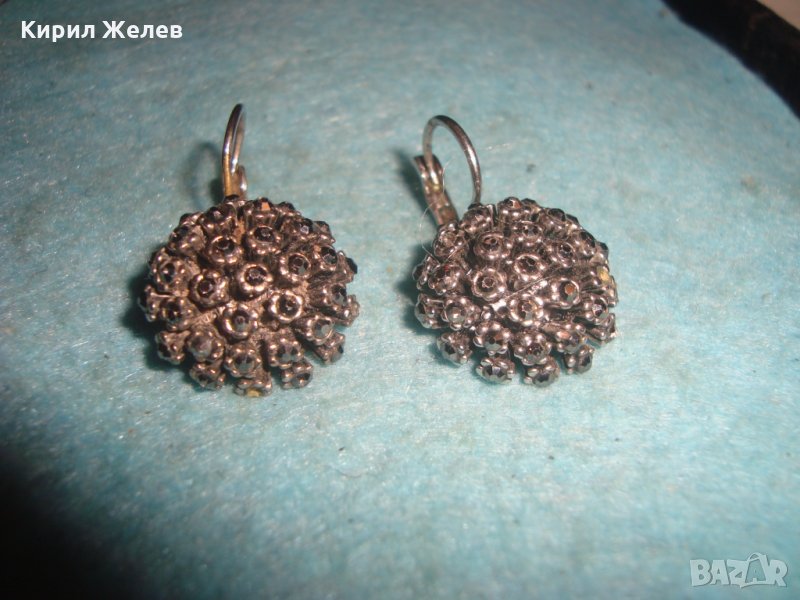 ПОСРЕБРЕНИ ФЛОРАЛНИ СКЪПОЦЕННИ АР НУВО ОБЕЦИ с МНОГО ФАСЕТИРАНИ МАРКАЗИТИ 26783