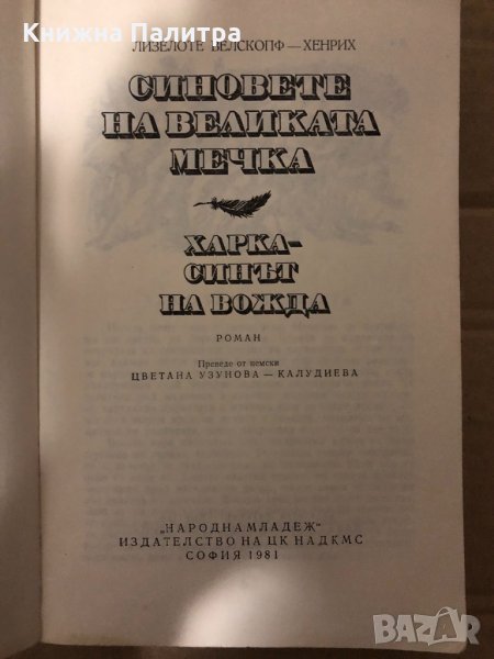 Синовете на Великата мечка. Том 1: Харка - синът на вожда Лизелоте Велскопф-Хенрих, снимка 1 - Художествена литература - 35000656 Синовете на Великата мечка. Том 1: Харка - синът на вожда Лизелоте Велскопф-Хенрих, снимка 2 - Художествена литература - 35000656 1/2