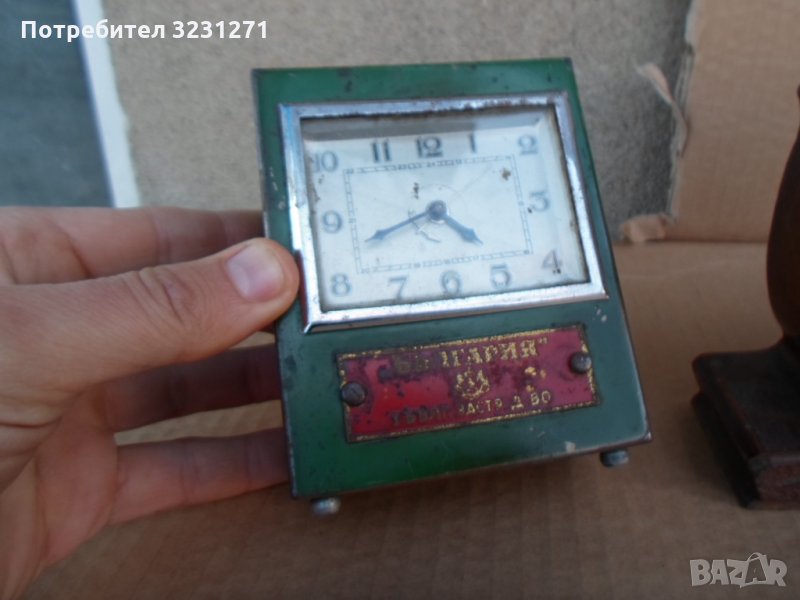 Представям ви 4 редки старинни настолни часовници.от ляво на дясно-ЦАРСТВО БЪЛГАРИЯ/1910-1920 години,часовник=касичка.не работи,запазен външен вид.вторият е ИУНГХАНС-работи,рядък е,с дървен корпус.третия е миниатиурен,работещ,много интересен.4 е като него,но си е с крачетата,не работи,цъка ,явно е за почистване.много интересни и редки часовници.цена от 35-65лв,поотделно.ако се купят заедно,естествено ще намаля.Юнгханса е продаден!!!