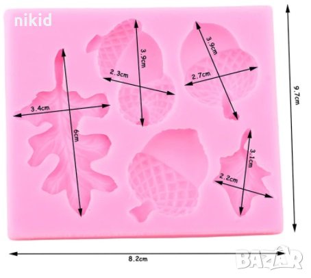 3 Жълъда жълъди жълъд и дъбови листа листо силиконов молд форма фондан шоколад → Обява 35011078