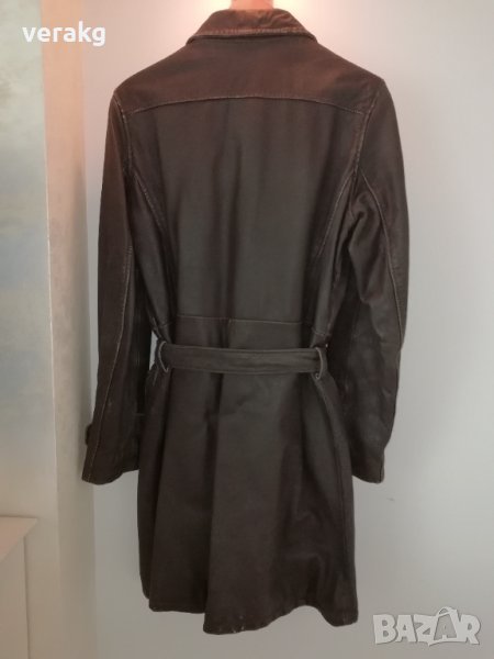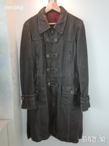 Кожено манто от естествена телешка кожа със състарен ефект на обработка, хубава подплата и си топли през зимата. Купувано е от италиански бутик за 200евро, размер XL, но може и от L или М да се носи по свободно, може с колан и без него също. Почти не е носено, защото не е моя стил.