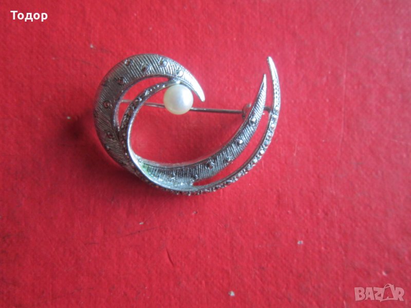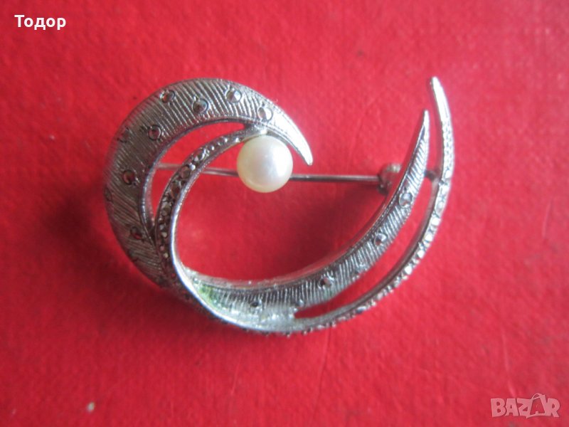 Уникална сребърна брошка с перла и камъни → Обява 35015072