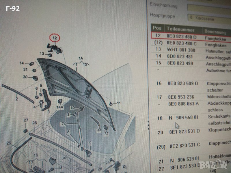 8E0823480D**NEU**VAG**AUDI**ЗАКЛЮЧВАЩ МЕХАНИЗЪМ ПРЕДЕН КАПАК**A 4(2002 - 2005