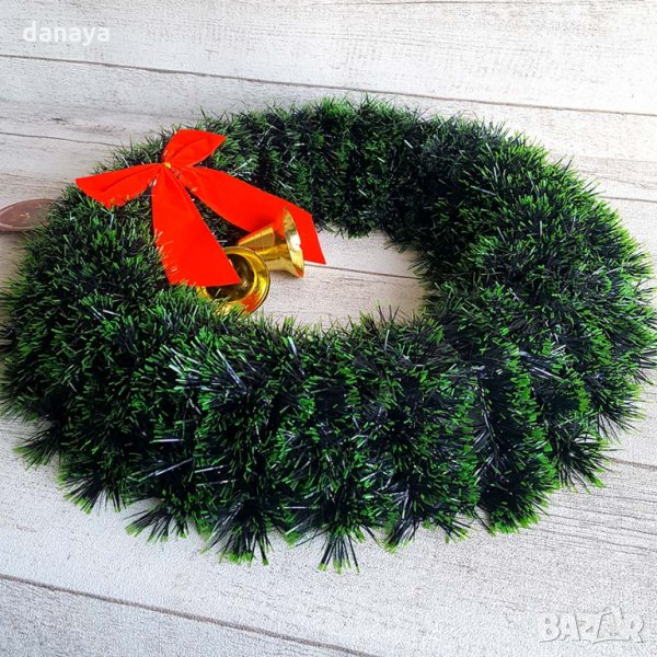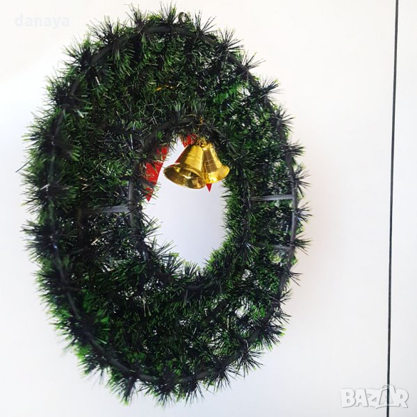 Материал: пластмасова основа, изкуствен гирлянд, текстилна панделка, пластмасови камбанки.