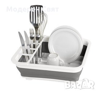 Сгъваемият сушилник за съдове и прибори за хранене решава вашите проблеми с пространството при мивката и създава допълнително удобство с приспособлението за източване на вода.