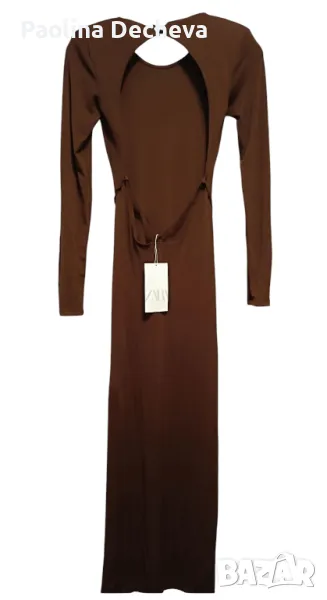 Кафява дълга рокля с гол гръб на Зара с етикет - 20лв