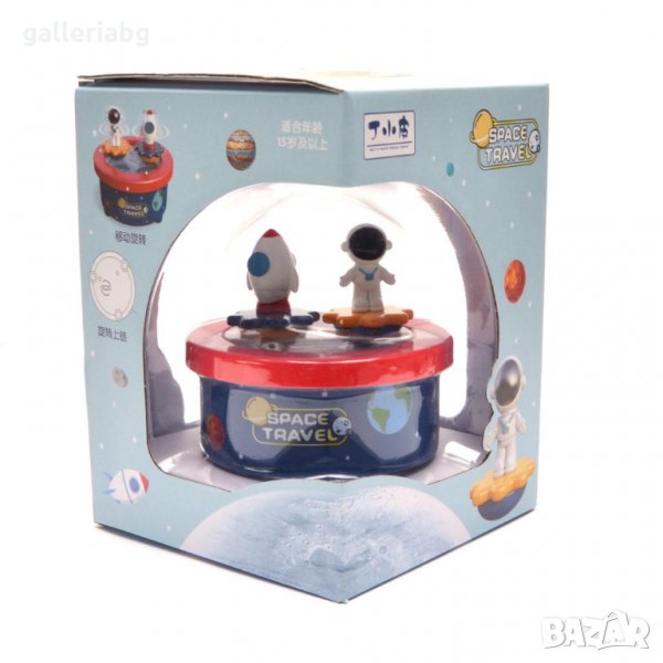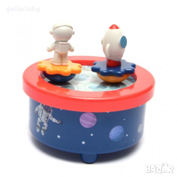 Музикална кутия с въртящи се фигурки на космонавт и ракета.