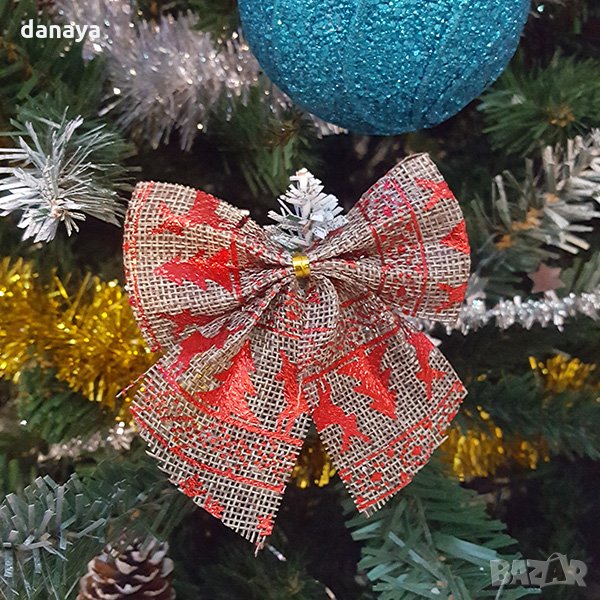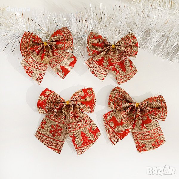 Комплект от 4 броя ленени панделки за декорация и украса за коледната елха или гирлянди. Стоят супер ефектно поставени на гирлянд, или като украшение за коледна елха. Прекрасна коледна украса за всеки дом!