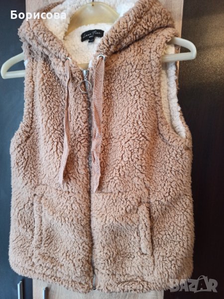 Продавам пухено елече Love tree в отлично състояние, размер S. Цветът е пепелно розов, отвътре е с бял пух. Отвън има 2 джобчета, с пухена качулка.