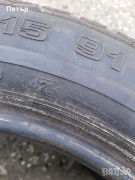 Гумата е с голям грайфер, вижда се от снимките.Много малко е ползвана, личи си още цветната шарка по нея!Не е крива.Размера е 195/65/15, ДОТ-а е стар, затова цената е такава.Произведена в Германия.
