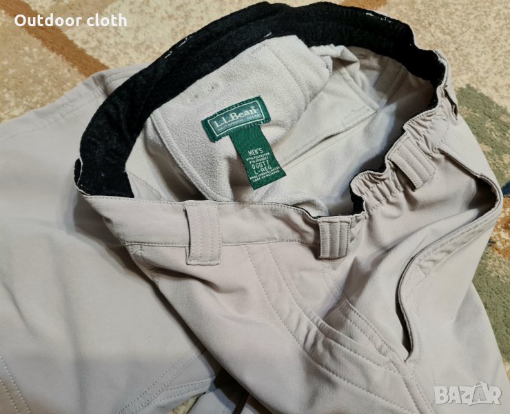 Много качествен панталон на американската фирма L.L.Bean. Направен от здрава и еластична в четирите посоки материя.Силно ветроустойчив и водо отблъскващ,но е без мембрана,следователно и добре дишащ,подходящ за сезоните есен, зима и пролет.Супер удобна кройка, предварително оформени колене, два горни джоба и три задни джоба с много лесен достъп(като на тактическите),ципове долу при крачолите за лесно обуване и събуване,както и пристягане с ластик със стопер.
