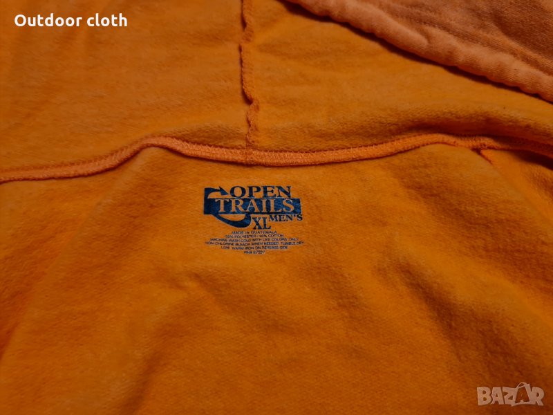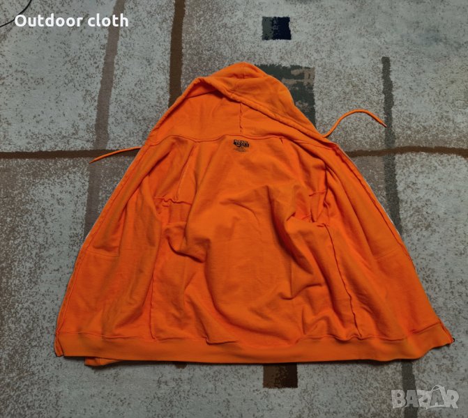 Суичър направен от памук и полиестер ватиран,но не е дебел.Цвета е сигнално оранжев,има два долни джоба, пристягане на качулката.