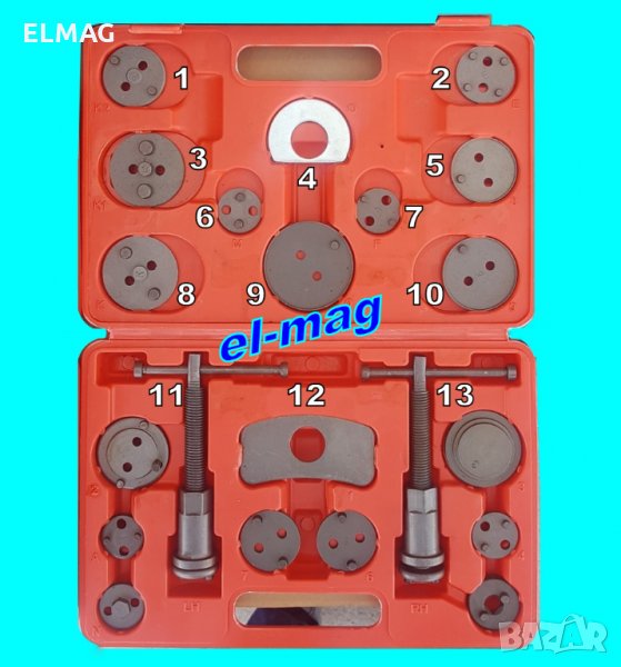Включва 2 ключа - с лява и дясна резба и 16 бр. адаптори на спирачните бутала, които отговарят на различни съвременни марки автомобили. Издръжлив и лесен за използване от професионалисти и аматьори.