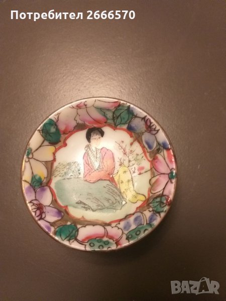 Китайска малка дълбока чиния със ръчно рисувани картини и позлата със маркировка ръчно изографирана 100 % оригинал , част от колекция