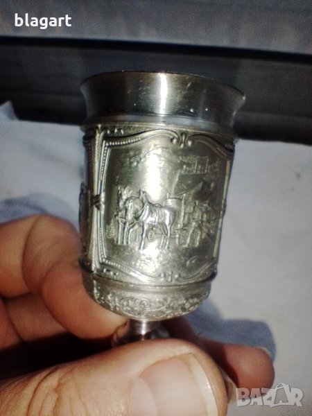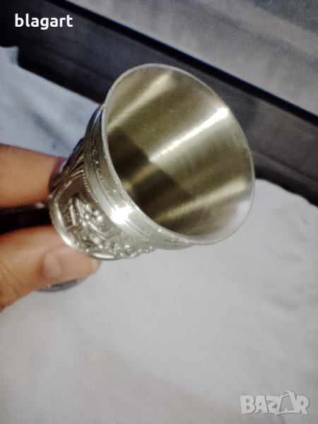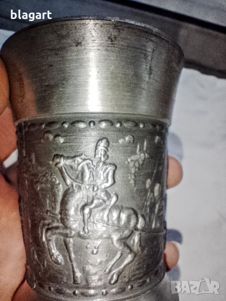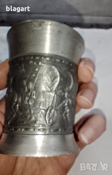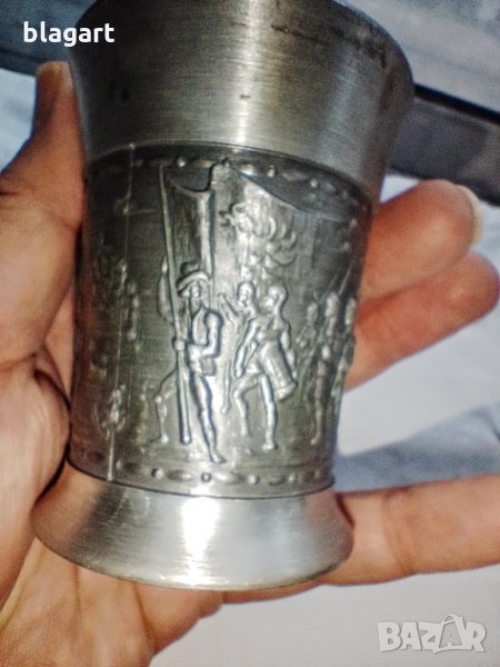 Чаши от калаено-сребърна сплав,типично немско изкуство. Могат да се ползват като антибактериални,не са употребявани. Донесени са от Германия, ЦЕНАТА е за 1 бр. от малкият размер-ракиена
