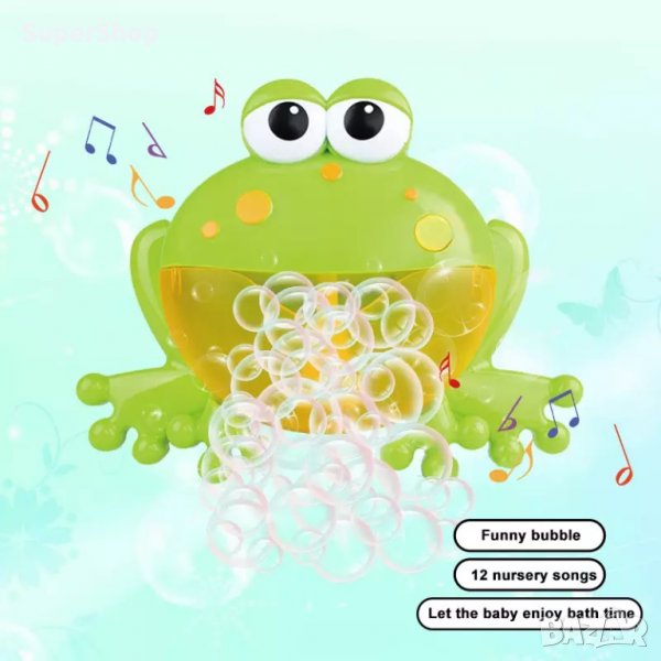 Детската музикална машинка за балончета Жаба е с прекрасен дизайн във формата на жаба и е една от най-забавните играчки за децата по-време на къпане. С нея децата ви ще заобичат да се къпят и вече няма да имате проблеми да ги накарате да влезнат в банята.