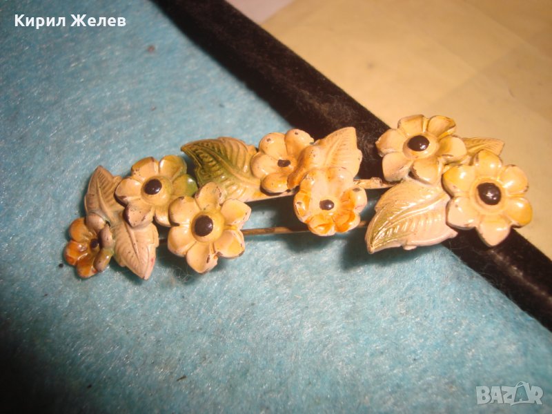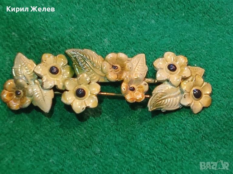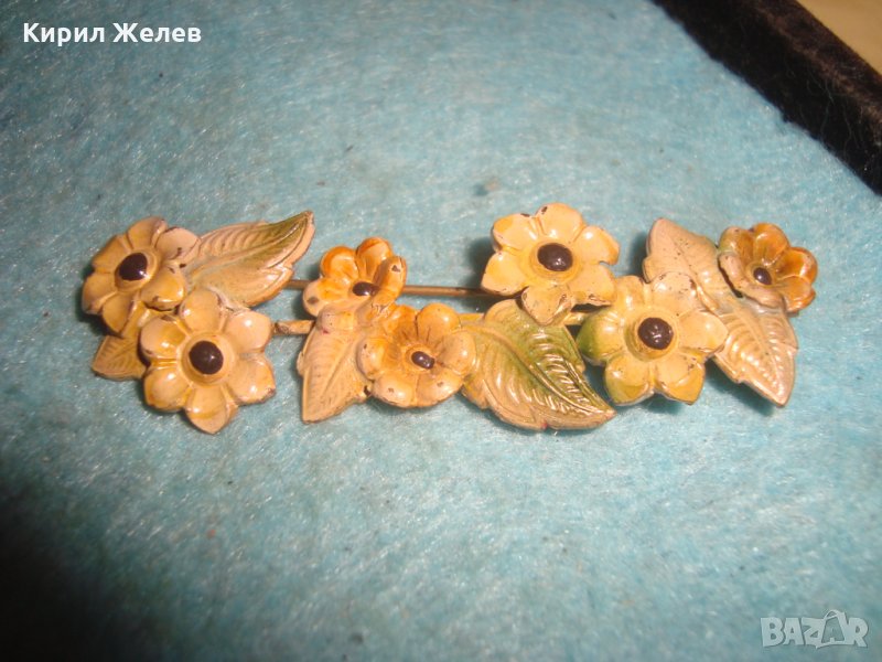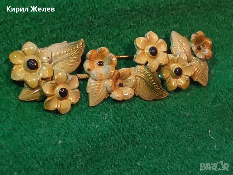 СТАРА АРТ НУВО ПОЗЛАТЕНА БРОНЗОВА ЛАКИРАНА ФЛОРАЛНА БРОШКА - ЦВЕТЯ 20704