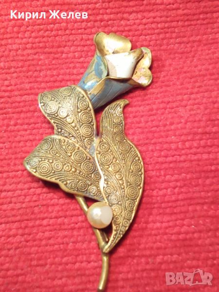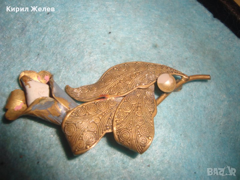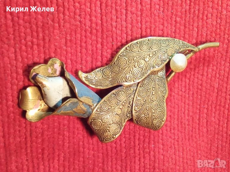 СТАРИННА АРТ ДЕКО ОРНАМЕНТИРАНА ПОЗЛАТЕНА БРОШКА ЦВЕТЕ БРОНЗОВА МАЙСТОРСКА РЪЧНА ИЗРАБОТКА 27082