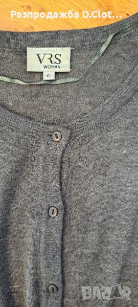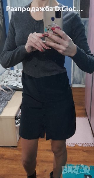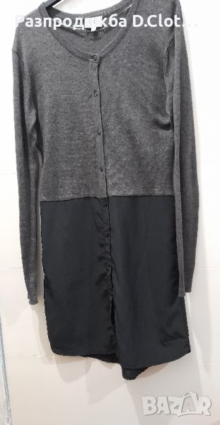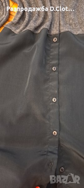 Отговаря на XS/S. По етикет S размер. По цялата дължина е с копчета,горната част е от фино плетиво,а долу е като шифон(лъскава материя.