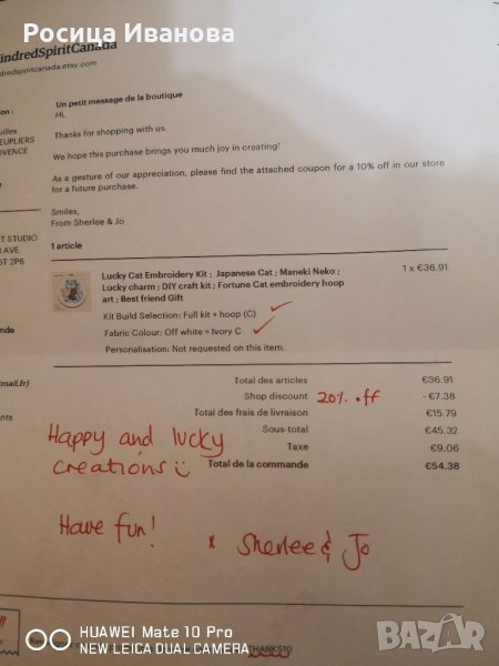 Подаръчен комплект за бродиране закупен от Etsy. Съдържа всичко необходимо за да създадете чудесен гоблен- гергеф, игли, конци DMC, подробни указания за всеки бод, памучен плат с щампа.