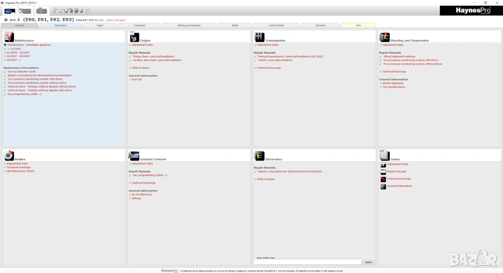 Съдържа огромна база данни с каталожни данни, информация за ремонти, резервни части и други за почти всички марки и модели автомобили от 1980 година до 2015.