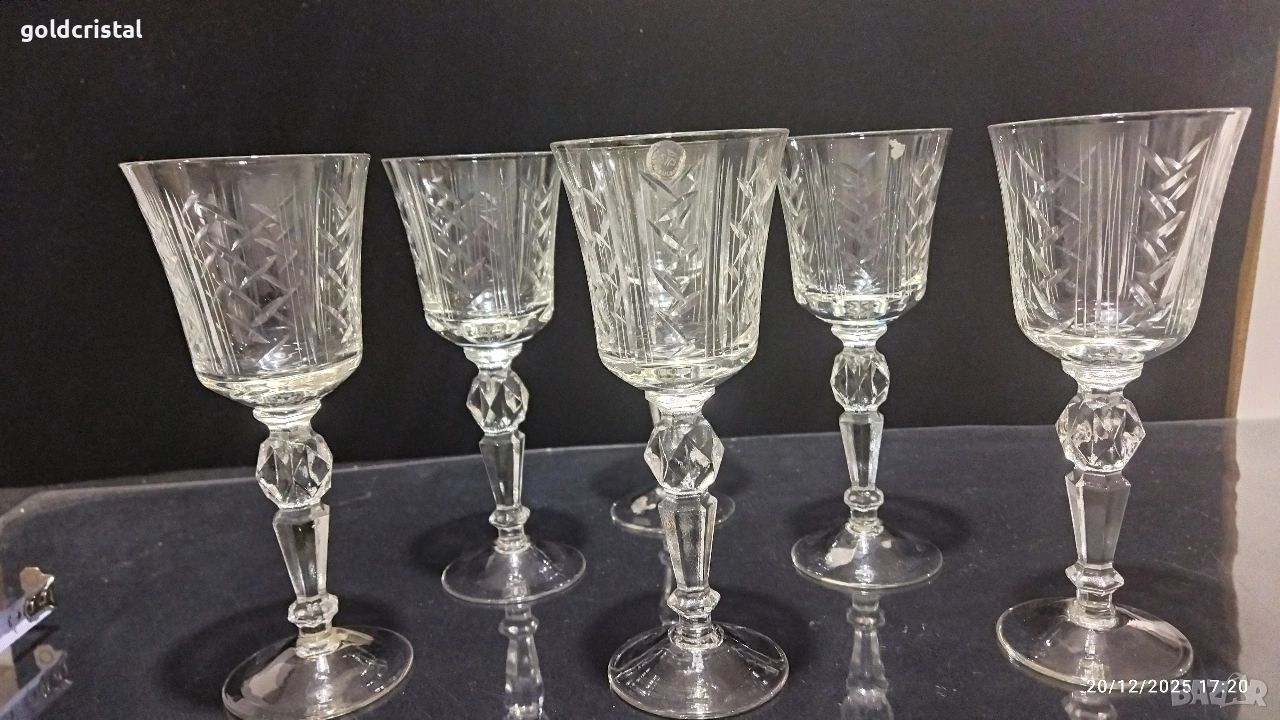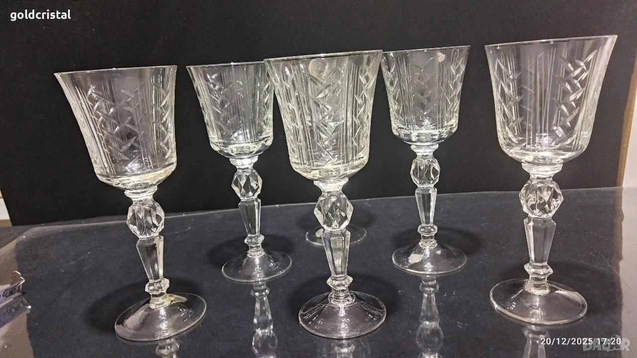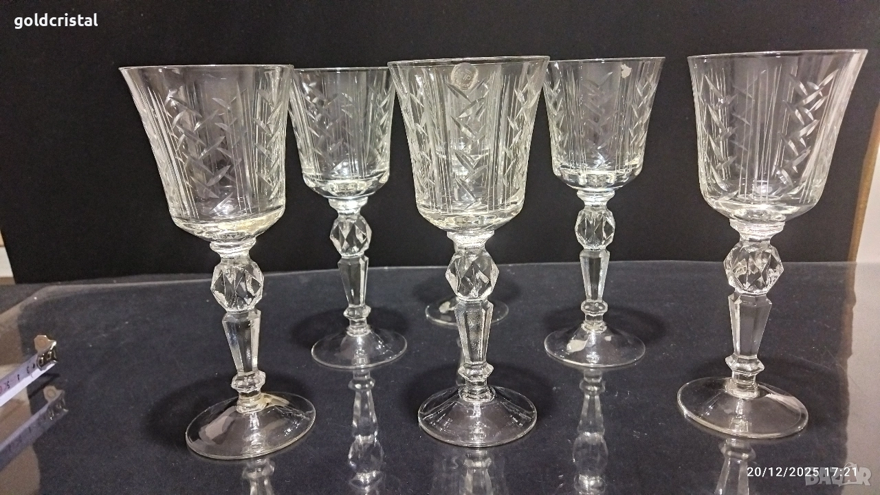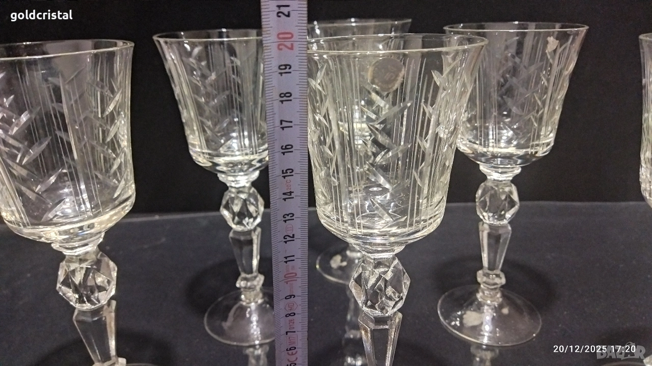 Кристални чаши за вино в кутия български кристал 6 бр-175лв неизползвани сервиз комплект сет лот ретро арт декор винтидж колекция стари антикварни предмети обзавеждане за дома и семейството