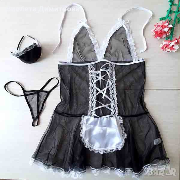 Еротичен костюм на камериерка, комплект от 3 части