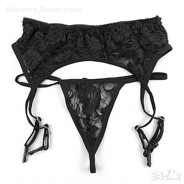 Еротично бельо дамски дантелен жартиер в комплект с прашки