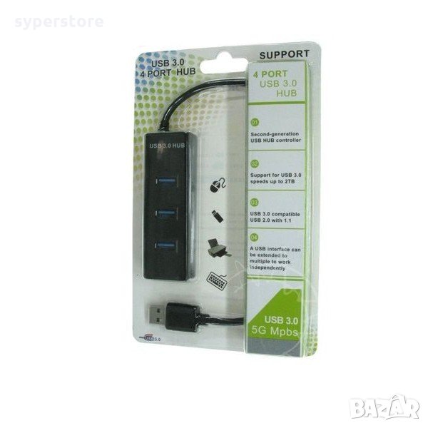 USB 4-портов хъб 3.0 Hub 1:4