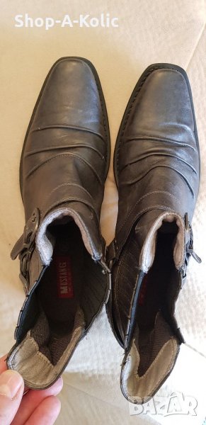 Оригинални мъжки боти, тип шпицари, от бранда Mustang Jeans. Естествена кожа. Имат лека забележка на едната отзаде-цената е съобразена. Много добро състояние и вид-за всички почитатели на класиката. Размер: 45. Моля, последвайте ни и в Instagram: shop_a_kolic.