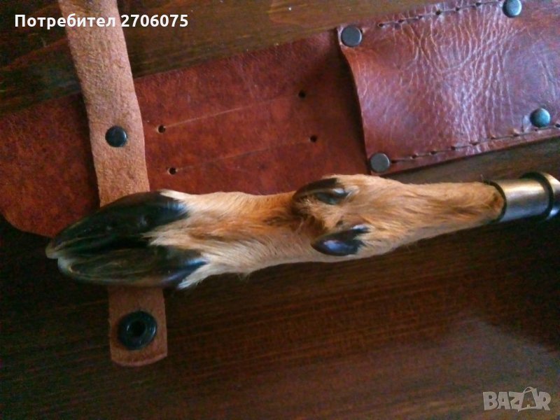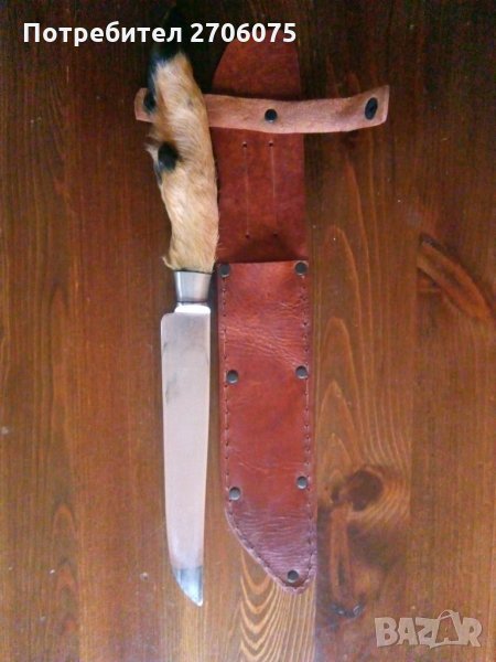 Голям,нож без забележка .Жилаво и остро острие ,дръжката е краче на сръндак, перфектно състояние.