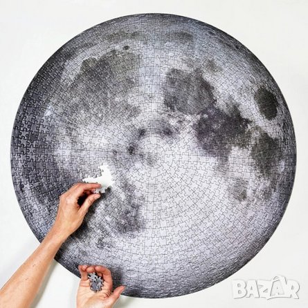 Кръгъл пъзел на луна 1000 части . Частите са с дебелина 1.5 мм и от задната страна са номерирани , допълнително има схема за редене също номерирана , ако усетите затруднение по време на редене. Подходящ за подарък за деца , мъже , жени , астрономи , рожден ден , имен ден и др.