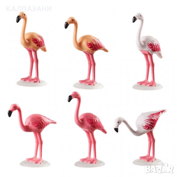 Комплектът съдържа шест фламинго в три различни цвята. Фигурите могат да се закрепят по-добре към основни плочи.