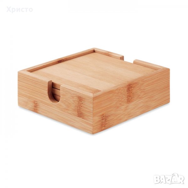 Продавам подложка за чаша комплект дървени масивни от бамбук, естествен, чисто нови, плътни, твърди, вечни, в дървена бамбукова кутия, не са разпечатвани. Висококачествен твърд естествен бамбук. Подложките са 4 броя с размер 10х10х0,6 см, кутията е с размер 11,3х11,3х3,5 см. Прекрасен подарък в картонена подаръчна кутия. Имам 3 комплекта.