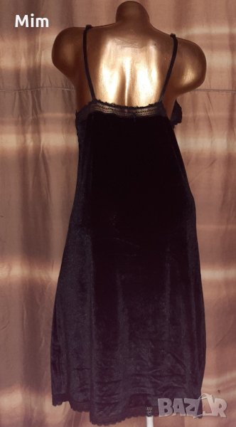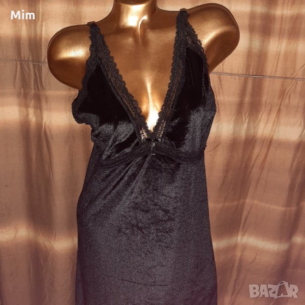 Черна кадифена мека нощница с регулируеми презрамки с мека чашка с дантела еластична, под мишниници 45 до 65 см едностранно дължина от подмишници 75 см