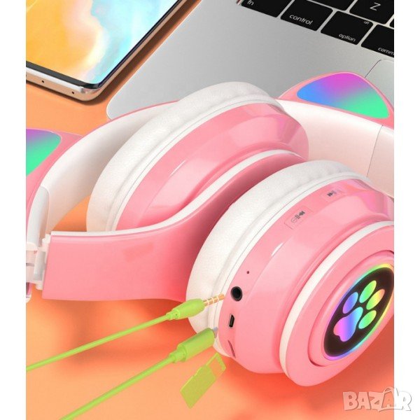 Детски слушалки с Bluetooth и сладки светещи котешки ушички. Имат ограничение на силата на звука до 85dB, което е изключително важно, защото ще пазят слуха на вашето дете.