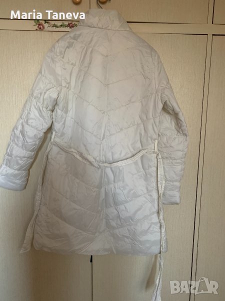 Шушляково манто, снежно бяло, ново. Дължината му е 95 см, разстоянието подмишниците ( от шев до шев) е 55 см, гръдната обиколка и обиколката на ханша са по 100 см. Разстоянието между раменете е 40 см, ръкавите са дълги 63 см.