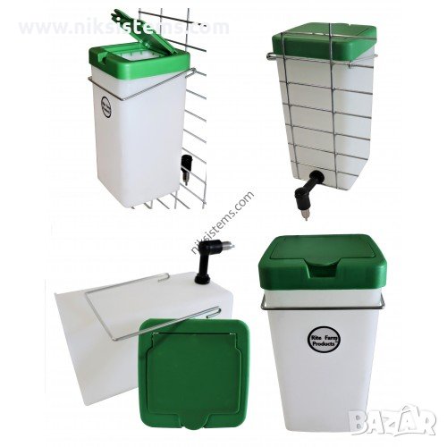 зайци. Съдържа пластмасов резервоар с шарнирно отварящ се капак, в основата напоителна нипелна поилка от неръждаема стомана. Благодарение на поцинкованата метална скоба, тази поилка може да се монтира на всякакъв вид мрежа, решетка или клетка. Скобата към комплекта дава възможност да регулирате височината на монтаж, като същевременно може да бъде поставена отвън или отвътре в клетката. Нипелната поилка не позволява изтичане на вода и запазва пода сух. Изработен от удароустойчива пластмаса с европейско качество, като предвидения полупрозрачен цвят на контейнера улеснява следенето на количеството вода в него. Пълненето на резервоара става отгоре, през подвижен отваряем капак. Предимството на тази поилка е капацитетът за съхранение на вода от 1 литър, предотвратява изтичане на вода и също така е лесна за почистване и пълнене. Не позволява замърсяване на водата, така че успешно се използва и за прилагане на лекарства и лечения във вода на зайците.