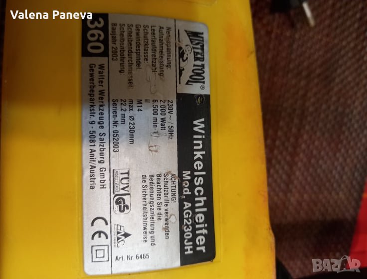 Шлайф - внос от Австрия Работи перфектно- 2000 вата - с преглед и тест Има две леки забележки - стоперното копче за диска липсва и дръжката е откъртена на две места